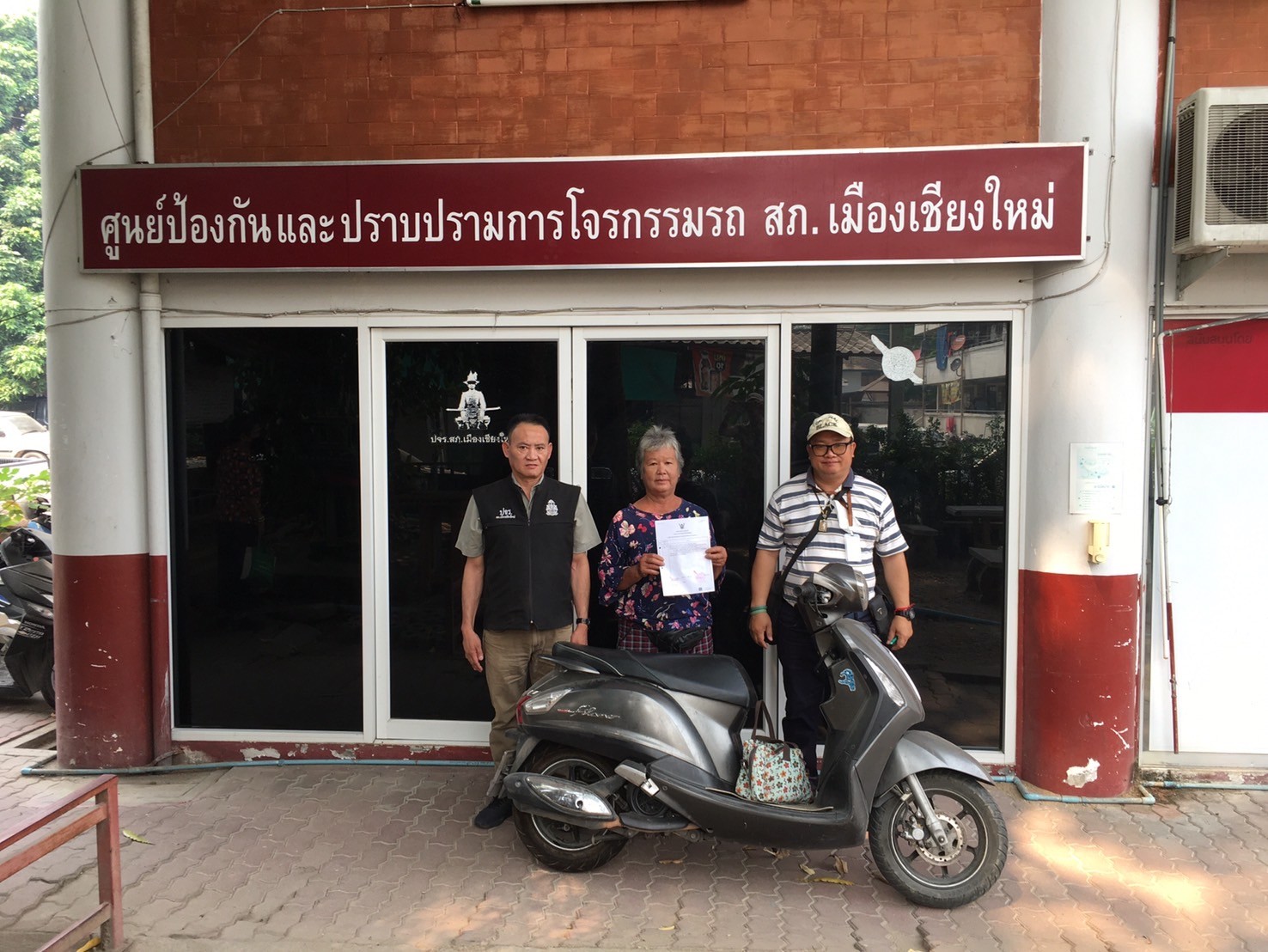 กรณีได้รับแจ้งจากศูนย์วิทยุนครพิงค์ รถจักรยานยนต์จอดทิ้งไว้บริเวณข้างร้านชุนหลีแบตเตอรี่ ถ.เชียงใหม่-หางดง ต.แม่เหียะ อ.เมืองเชียงใหม่ฯ เจ้าหน้าที่ชุด ปจร.จึงได้ไปตรวจสอบและติดต่อไปยังเจ้าของรถ จนทราบว่ารถจักยานยนต์ คันดังกล่าวได้แจ้งหายไว้ที่ สภ.หางดง จึงให้เจ้าของนำเอกสารการแจ้งความกับเอกสารตัวรถมาติดต่อรับ และแจ้งเจ้าหน้าที่ตำรวจต้นทาง ดำเนินการในส่วนที่เกี่ยวข้องต่อไป