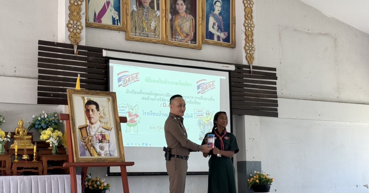 ผู้ดำเนินการ ร.ต.อ.พันธ์ พันธ์หนองหว้า รอง สว.สส.สภ.เมืองเชียงใหม่ ครูตำรวจแดร์ รหัส 25201 และ ชุด ปส.สภ.เมืองเชียงใหม่ ,ชุด ชมส.สภ.เมืองเชียงใหม่ ,ชุด Local cat สภ.เมืองเชียงใหม่สถานที่ โรงเรียนบ้านแม่เหียะสามัคคี ต.แม่เหียะ อ.เมือง จ.เชียงใหม่ผลการปฏิบัติ พิธีมอบใบประกาศนียบัตร และปิดการฝึกอบรมโครงการ การศึกษาเพื่อต่อต้านการใช้ยาเสพติดในเด็กนักเรียน (D.A.R.E.) โรงเรียนบ้านแม่เหียะสามัคคี นักเรียนชั้น ป.5 และ ป.6 นักเรียนทั้งหมด 37 คน