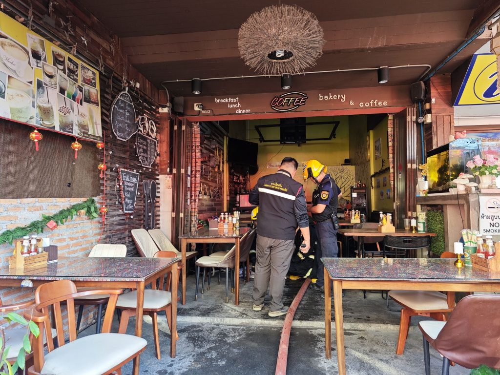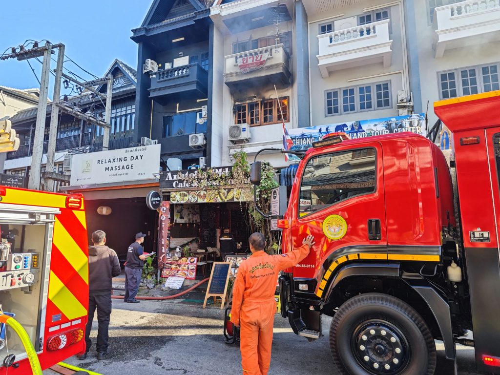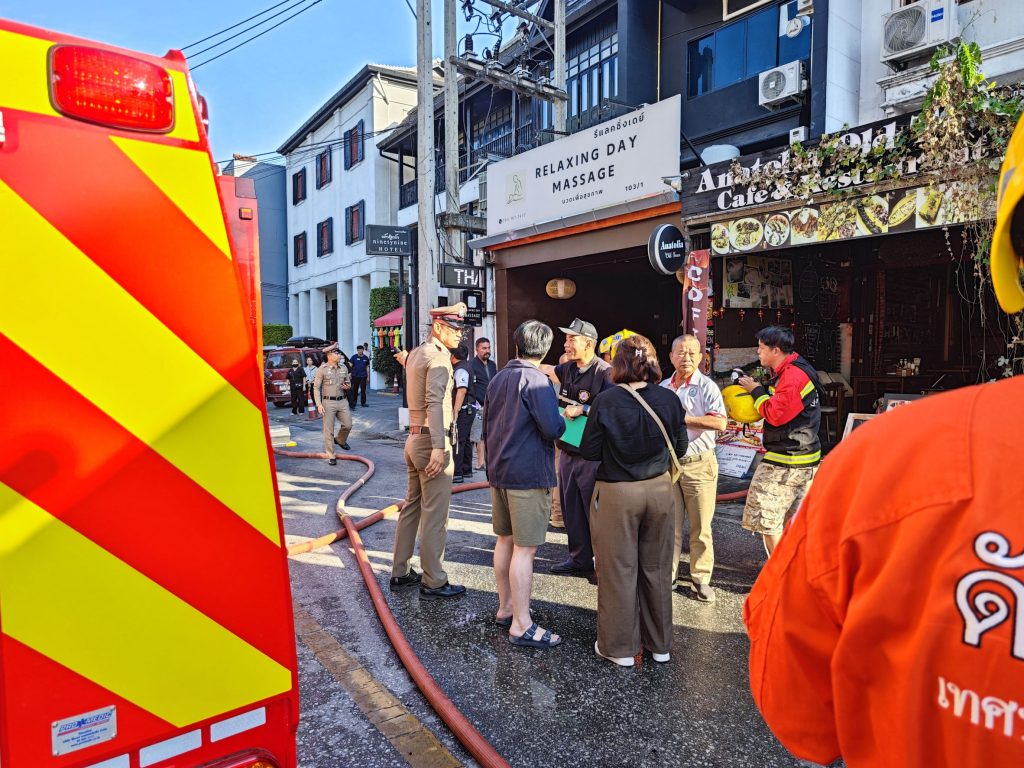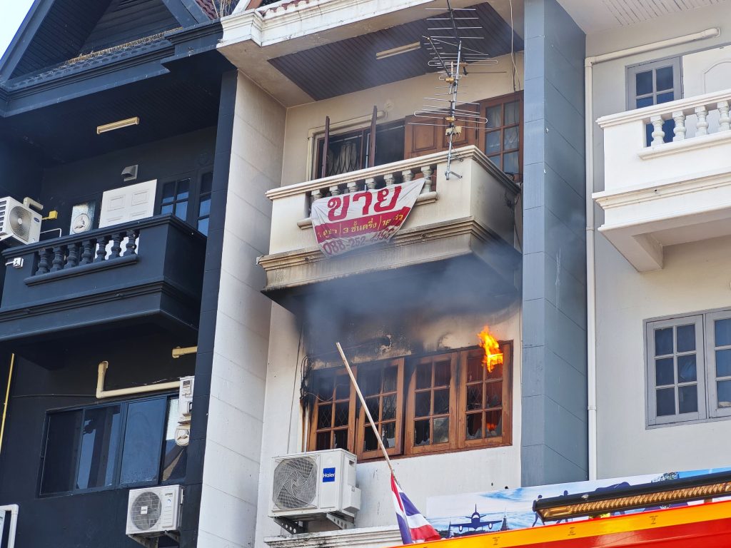 ดับเพลิงเจดีย์งามได้ฉีดน้ำควบคุมเพลิงไว้ไม่ให้ลุกลาม ไปยังตึกใกล้เคียง