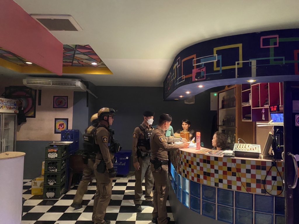 พ.ต.อ.ปรัชญา ทิศลา ผกก.สภ.เมืองเชียงใหม่,พ.ต.ท.คทาวุฒิ หงษ์หนึ่ง รอง ผกก.ป.สภ.เมืองเชียงใหม่,นำโดย พ.ต.ท.วิษณุ นวนมุสิด สวป.สภ.เมืองเชียงใหม่,ร.ต.อ.ชัชวาลย์ ตันตา รอง สวป.ฯ,พร้อมกำลังสายตรวจ ออกตรวจกวดขัน สถานบริการ ผับบาร์ คาราโอเกะ และร้านจำหน่ายสุรา
