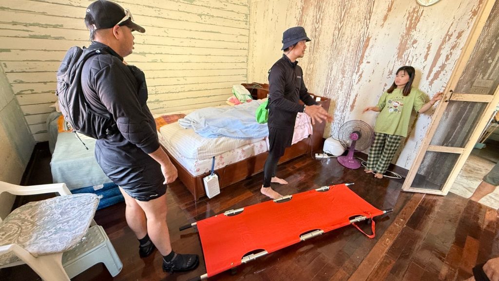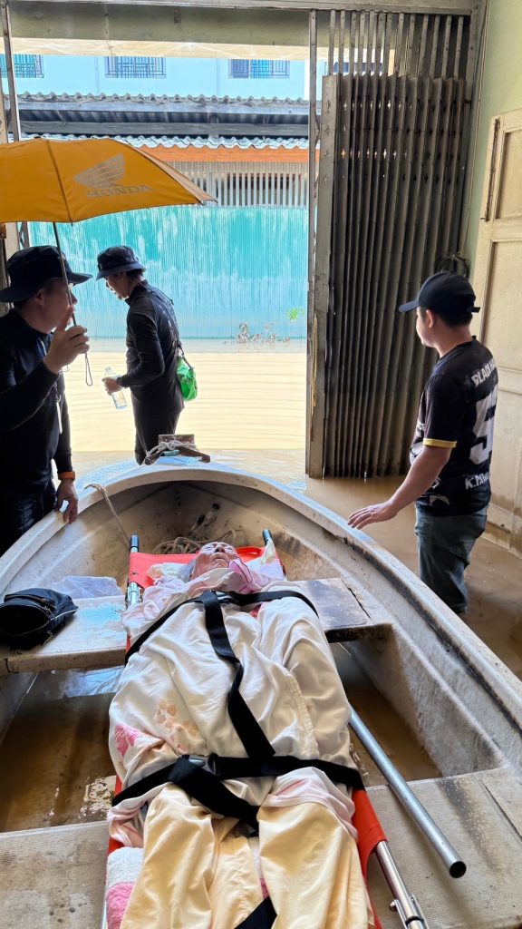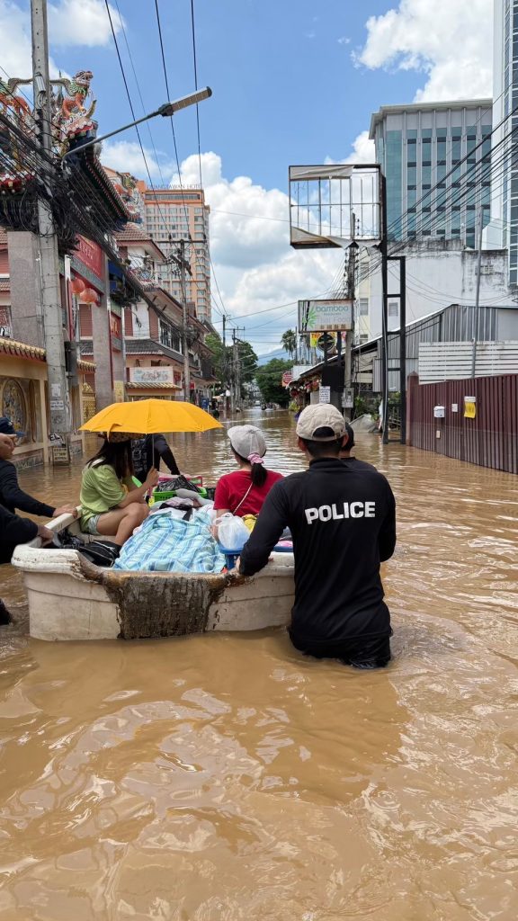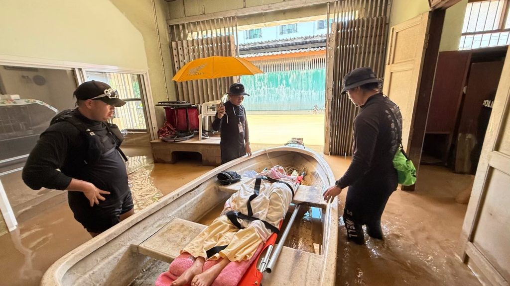 พ.ต.อ.ปรัชญา ทิศลา ผกก.สภ.เมืองเชียงใหม่ รับการประสานจากประชาชนในพื้นที่ ตลาดไนส์บาร์ซ่า ถ.ช้างคลาน ว่ามีผู้ติดอยู่ในบ้านพัก เป็นผู้สูงอายุ เพศชาย อายุ 104 ปี อยู่บริเวณชั้น2 ของบ้าน จึงได้สั่งการให้ชุดช่วยเหลือประชาชน ของ สภ.เมืองเชียงใหม่ เป็นชุดปฏิบัติการช่วยเหลือเร่งด่วน โดยการนำเรือเข้าไปช่วยเหลือ ซึ่งระดับน้ำอยู่ในระดับประมาณสูง ได้มีการวางแผนและใช้ความระมัดระวังในการเดินเท้าเข้าไป และได้นำตัวผู้สูงอายุออกมา เป็นไปด้วยความเรียบร้อย และปลอดภัย และได้นำมาพักคอย ณ สภ.เมืองเชียงใหม่ เพื่อรอญาติมารับตัวต่อไป