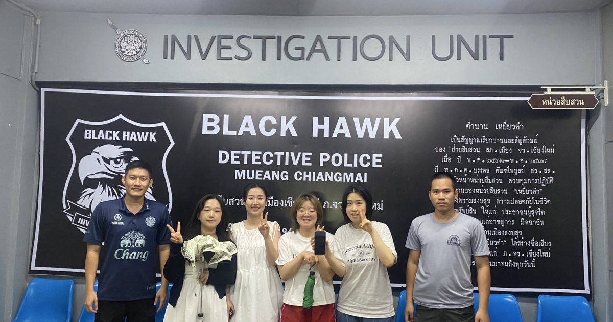 วันนี้ (14 ธ.ค.2567) เวลาประมาณ 20.53 น. ได้มี นักท่องเที่ยว ชาวเกาหลี ได้เดินทางมาแจ้งกับเจ้าหน้าที่ตำรวจ สภ. เมืองเชียงใหม่จึงขอให้เจ้าหน้าที่ตำรวจช่วยติดตามหา โทรศัพท์มือถือยี่ห้อ iPhone 11 (สิ่งของหาย) ซึ่งหายไประหว่างนั่งรถกับที่พักตามที่ได้รับแจ้ง เจ้าหน้าที่ชุดสืบสวนฯ จึงได้สืบสวนออกติดตามจนพบ และได้ส่งมอบให้แก่นักท่องเที่ยวชาวจีนเรียบร้อย (โดยผู้เสียหายตรวจสอบทรัพย์สินดังกล่าวแล้วไม่พบความเสียหายแต่อย่างใด)