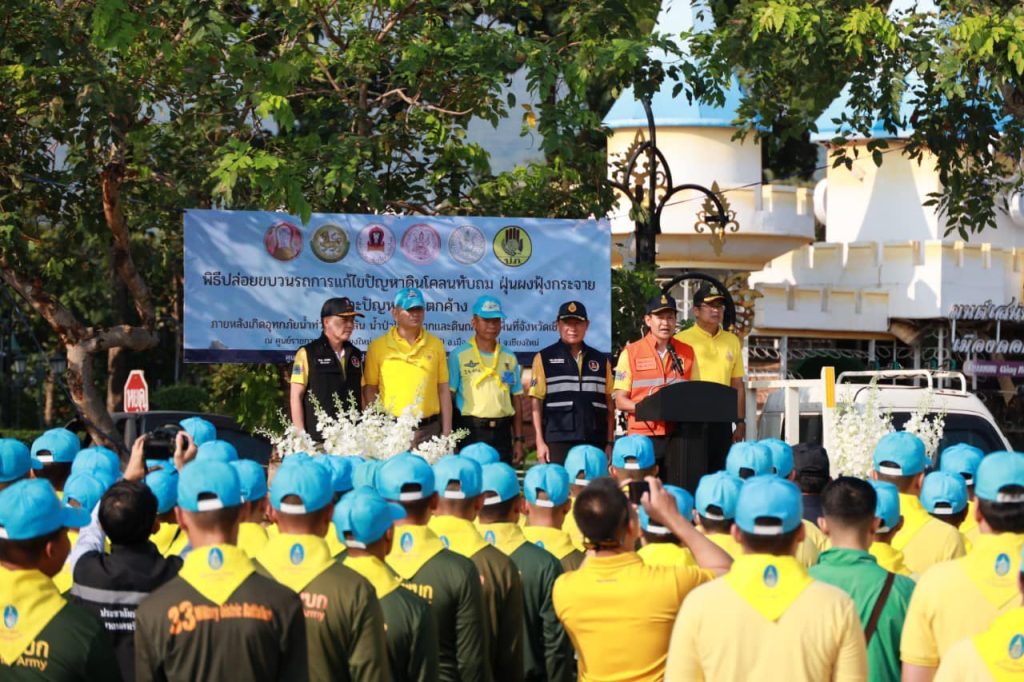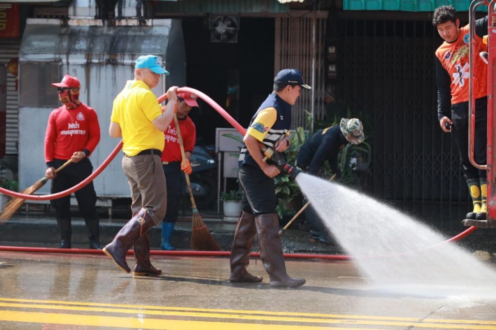 จำนวน 10 นาย ร่วม ประชุมแถว ก่อนออกปฏิบัติการล้างทำความสะอาดเมืองหลังน้ำท่วมณ ศาลาริมน้ำ อบจ.เชียงใหม่