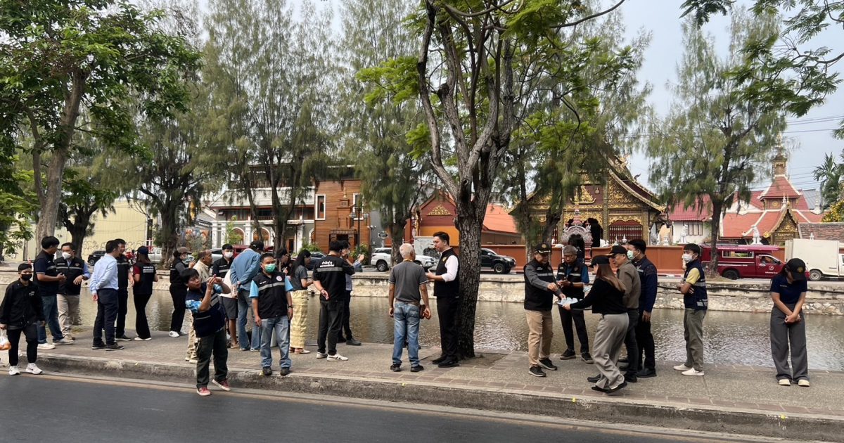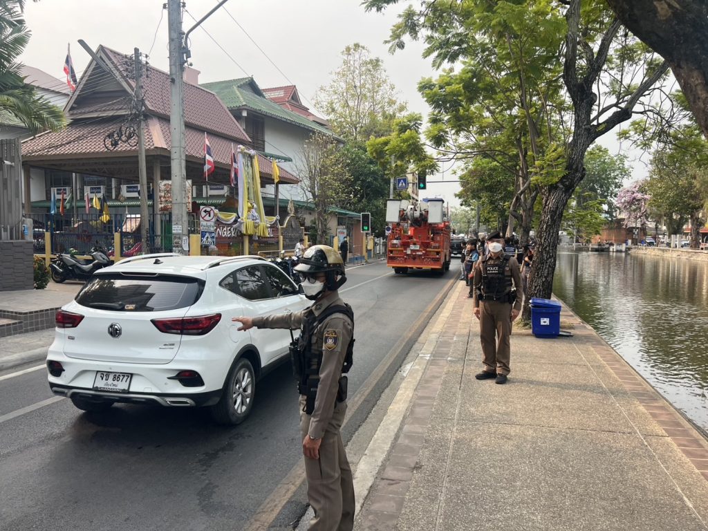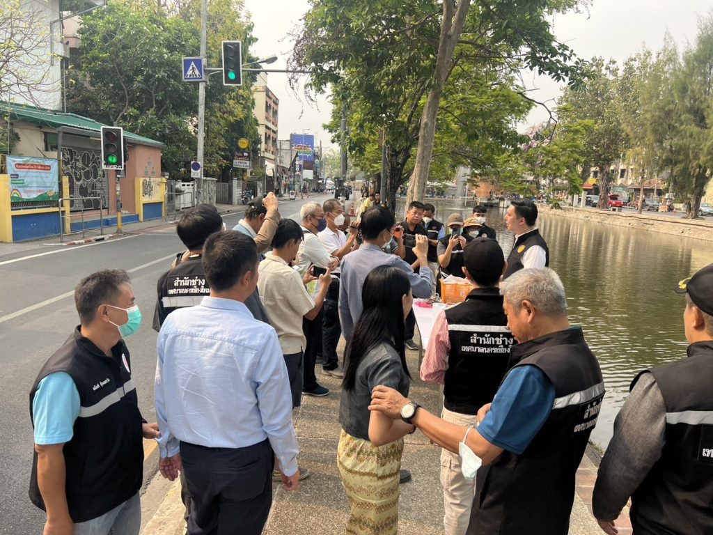 ภายใต้การอำนวยการของ พ.ต.อ.ปรัชญา ทิศลา ผกก.สภ.เมืองเชียงใหม่, พ.ต.ท.ทัตตวีย์ ด่านพิทักษ์ตระกูล รอง ผกก.ป.ฯ,พ.ต.ท.วิษณุ นวนมุสิด สวป.ฯ,สั่งการใหร้ ร.ต.อ.ชัชวาลย์ ตันตา รอง สวป.ฯ,พร้อมกำลังสายตรวจ ว.4 และจ้าหน้าที่งานอำนวยการ สภ.เมืองเชียงใหม่ ดูแลความปลอดภัยและอำนวยความสะดวกด้านการจราจร คณะนายกเทศมนตรีนครเชียงใหม่ และสื่อมวลชน ตรวจสอบคุณภาพน้ำคูเมือง บริเวณหน้าโรงเรียนเทศบาลดอกเงิน เพื่อเตรียมพร้อมรับเทศกาลสงกรานต์ 2568