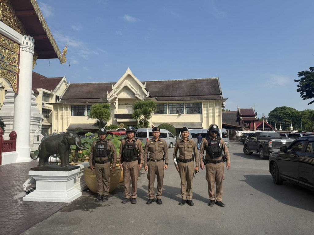 พ.ต.อ.ปรัชญา ทิศลา ผกก.สภ.เมืองเชียงใหม่ ,พ.ต.ต.วิษณุ นวนมุสิด สวป.ฯ เข้าร่วมพิธี พร้อมจัดกำลังเจ้าหน้าที่ตำรวจ ดูแลรักษาความปลอดภัย และอำนวยความสะดวกการจราจร ณ วัดเจดีย์หลวง อ.เมือง จ.เชียงใหม่