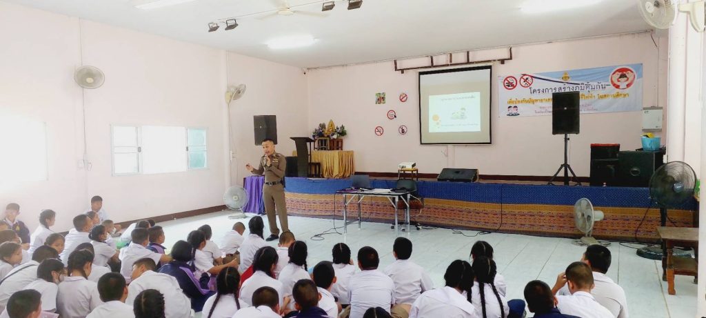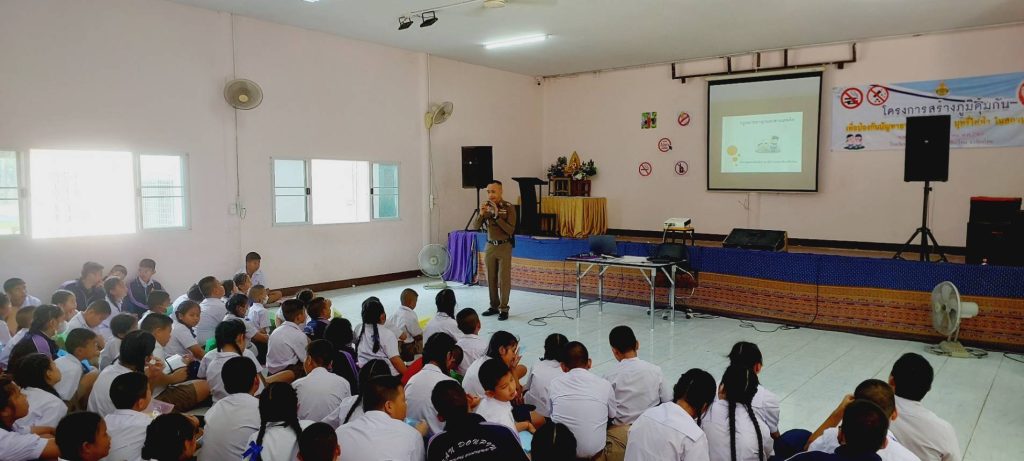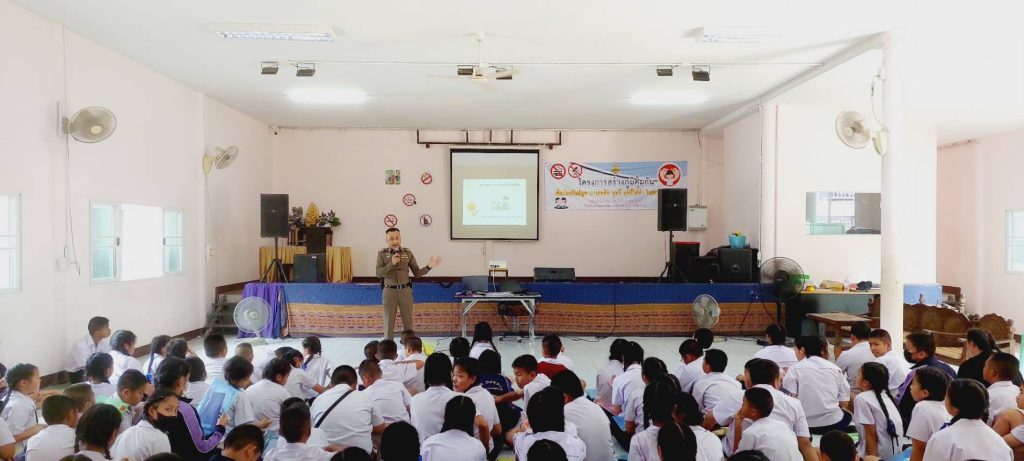 มอบหมายให้ พ.ต.ต.กันย์กวีร์ กนกทิพยกุล สวป.(ชส.) สภ.เมืองเชียงใหม่ พร้อมกำลัง เข้าเป็นวิทยากรให้ความรู้ ตาม “โครงการสร้างภูมิคุ้มกันเพื่อป้องกันปัญหายาเสพติด บุหรี่ บุหรี่ไฟฟ้าในสถานศึกษา” ณ ห้องประชุมโรงเรียนบ้านดอนปิน ต.แม่เหียะฯ โดยมี นักเรียนชั้นประถมศึกษาปี่ที่ 4 – มัธยมศึกษาปีที่ 3 เข้าร่วมอบรม 138 คน