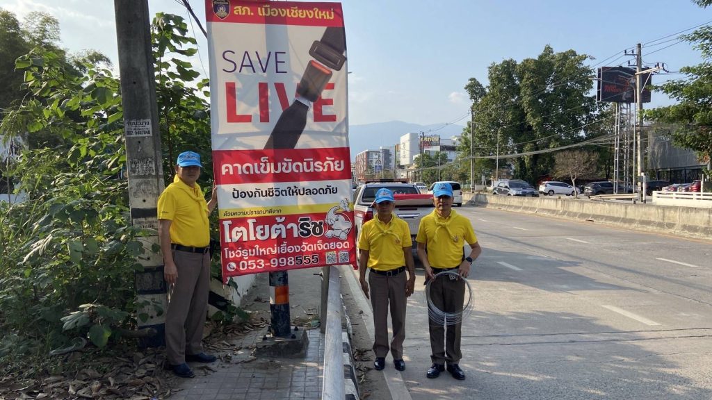 มอบหมายให้ พ.ต.ต.กันย์กวีร์ กนกทิพยกุล สวป.(ชส.) สภ.เมืองเชียงใหม่ พร้อมกำลัง จิตอาสาทำการติดป้ายประชาสัมพันธ์การขับขี่ปลอดภัยในห้วงเทศกาลส่งท้ายปีเก่า ต้อนรับปีใหม่ปี68 ริมถนนมหิดลทั้งขาเข้าและขาออก เป็