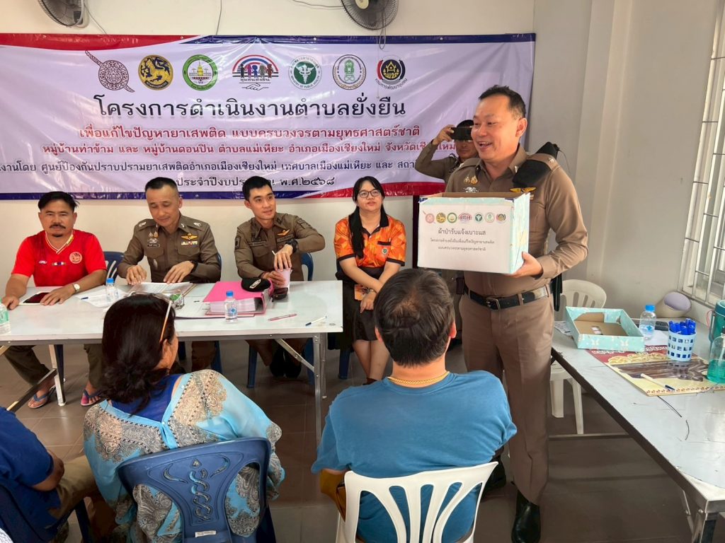 5.2. ได้ทำการแสวงหาความร่วมมือโดยชุดปฏิบัติการ ลงพื้นที่ ร่วมกับ นายสุรชัย ปันปวง ผู้ใหญ่บ้าน และคณะทำงาน แสวงหาความร่วมมือจากประชาชน และทำการตรวจปัสสาวะ กลุ่มเป้าหมาย อายุ 12 – 65 ปี รวมทั้งหมด 284 ครัวเรือน ประชากรเป้าหมายจำนวน 658 คน