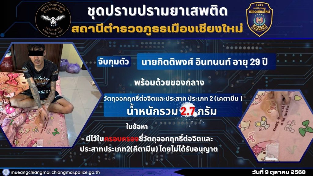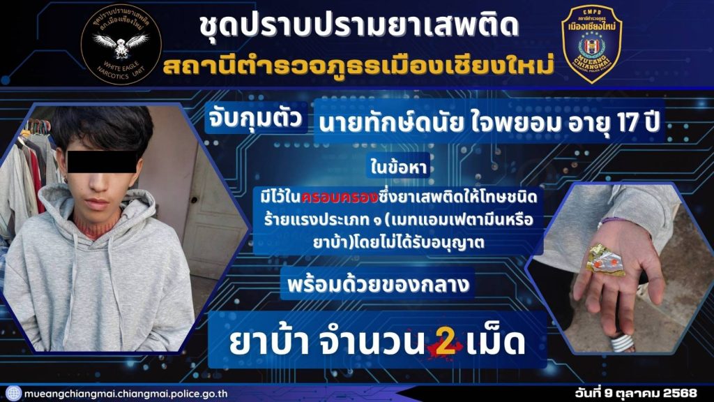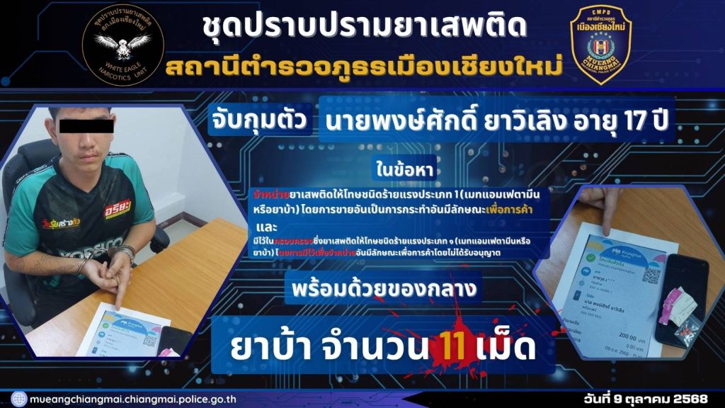 นำส่ง พงส.ฯ สภ.เมืองเชียงใหม่ เพื่อดำเนินคดีตามกฎหมายต่อไป