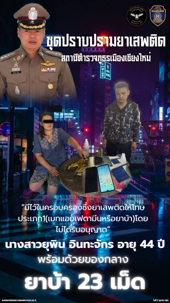 นำส่ง พงส.ฯ สภ.เมืองเชียงใหม่ เพื่อดำเนินคดีตามกฎหมายต่อไป