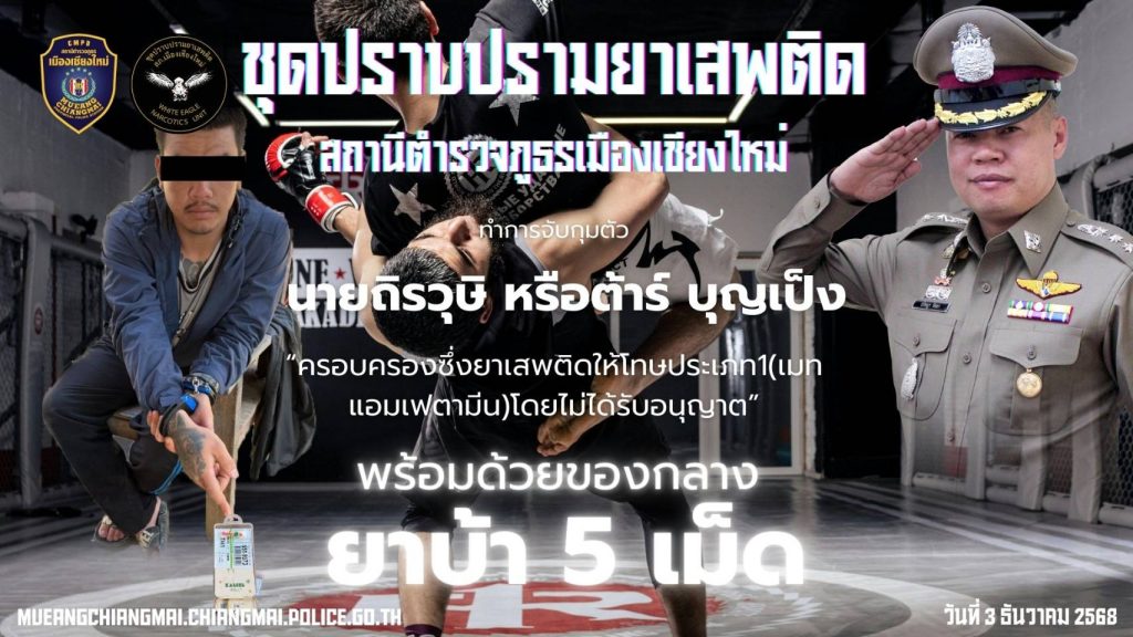 นำส่ง พงส.ฯ สภ.เมืองเชียงใหม่ เพื่อดำเนินคดีตามกฎหมายต่อไป