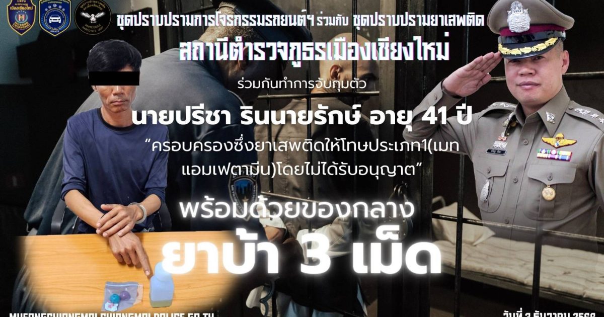 🚨จับกุม นายถิรวุษิ หรือต้าร์ บุญเป็ง อายุประมาณ 25 ปี ที่อยู่ 86/1 ม.4 ต.แม่เหียะ อ.เมืองเชียงใหม่ จ.เชียงใหม่ ( เกิดเมื่อวันที่ 18 เมษายน 2543 หมายเลขประจำตัวประชาชน 1 5099 66052 75 9 ) ผู้ถูกจับ