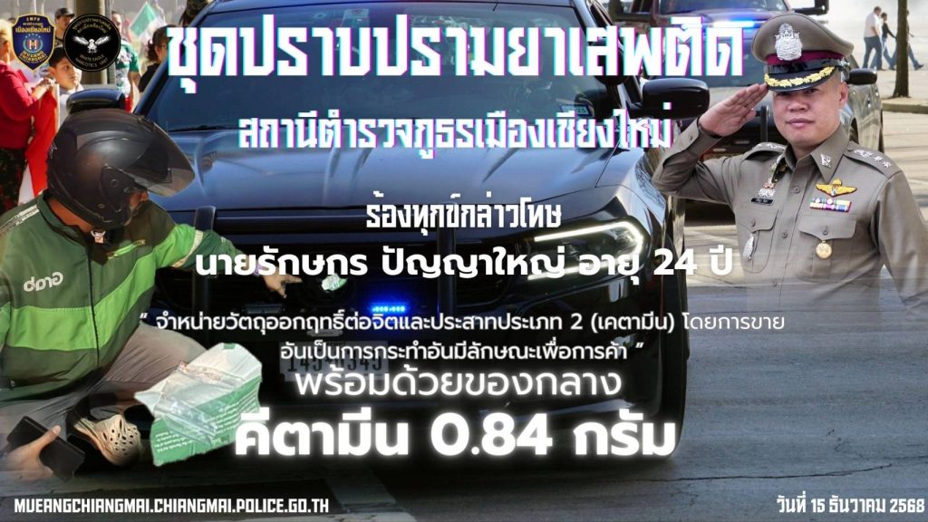 นำส่ง พงส.ฯ สภ.เมืองเชียงใหม่ เพื่อดำเนินคดีตามกฎหมายต่อไป