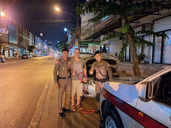 วันที่ 15 ธ.ค. 66 เวลา 20.40 น. ขณะที่เจ้าหน้าที่ตำรวจ สภ.เมืองเชียงใหม่ พ.ต.ต.วิษณุ นวนมุสิด สารวัตรป้องกันปราบปรามฯ พร้อมด้วย ร.ต.อ.นพ พึ่งศรี ร้อยเวร 20 ออกตรวจในเขตพื้นที่รับผิดชอบ ขณะออกตรวจ ได้พบประชาชนขอความช่วยเหลือบริเวณ ตรงข้ามธนาคารออมสิน สาขา ช้างคล้าน ถ.ช้างคลาน ต.ช้างคลาน อ.เมือง จว.เชียงใหม่ จึงได้ดำเนินการตรวจสอบ พบว่ารถยนต์แบตเตอรี่หมด เจ้าหน้าที่ตำรวจจึงได้ดำเนินการเข้าช่วยเหลือโดยการพ่วงแบตเตอรี่จนรถยนต์สตาร์ทติดและสามารถเดินทางต่อได้