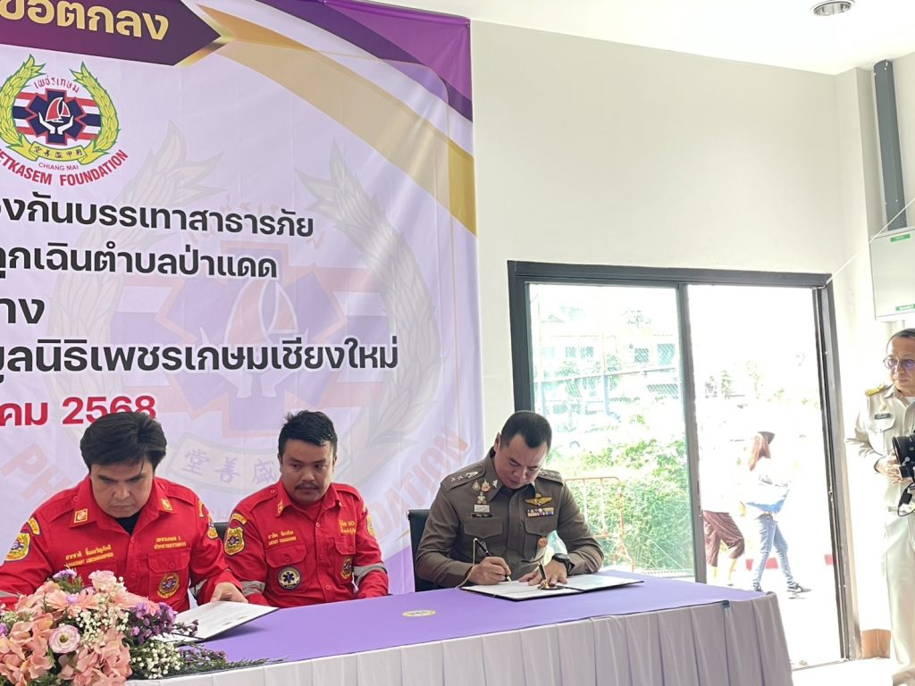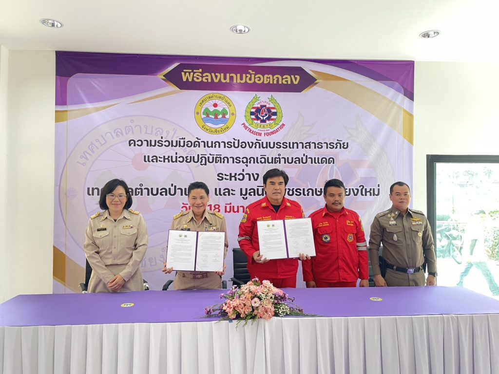 18 มี.ค.2568 เวลา 09.30 น.พ.ต.อ.ปรัชญา ทิศลา ผกก.สภ.เมืองเชียงใหม่ ร่วมกับ นายรุ่งปรีชา ปั๋นแก้ว นายกเทศมนตรีเทศบาลตำบลป่าแดด กต.ตร. สภ.เมืองเชียงใหม่ ร่วมเป็นเกียรติและสักขีพยาน ในการทำบันทึกข้อตกลง (MOU) ความร่วมมืองานป้องกันบรรเทาสาธารณะภัย และด้านการแพทย์ฉุกเฉิน ต.ป่าแดด ระหว่าง เทศบาลตำบลป่าแดด และมูลนิธิเพชรเกษม สาขาเชียงใหม่ ณ ศาลาเอนกประสงค์สุสานท่าวังตาล ต.ป่าแดด