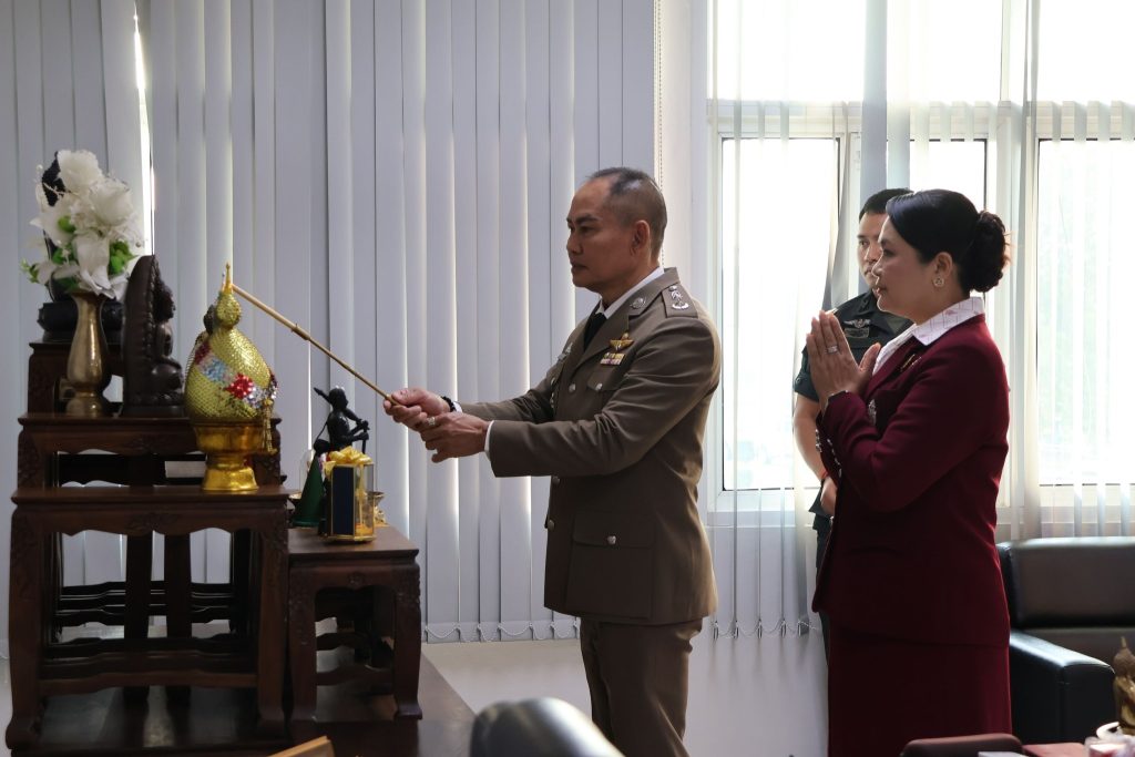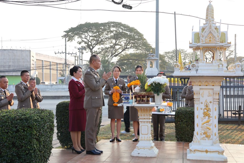 เวลา 07.30 น. พล.ต.ต.ยุทธนา แก่นจันทร์ รรท.ผบก.ภ.จว.เชียงใหม่ พร้อมด้วยคุณจารุณี แก่นจันทร์ ประธานชมรมแม่บ้านตำรวจเชียงใหม่ ได้สักการะสิ่งศักดิ์สิทธิ์ และพระพุทธพิทักษ์บดีศรีล้านนา พระพุทธรูปประจำ ภ.จว.เชียงใหม่ เพื่อความเป็นสิริมงคลในการปฏิบัติหน้าที่