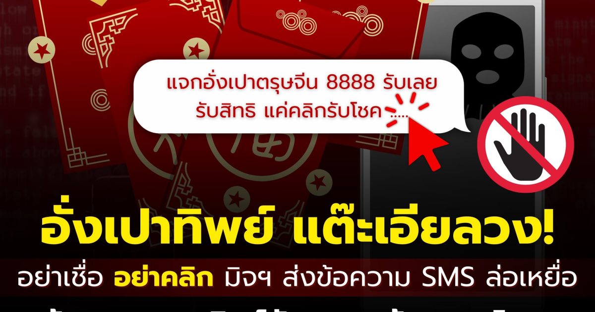 #ตรุษจีน มุกนี้กำลังมา ส่งข้อความ SMS ลวงว่าโชคดี ให้คลิกรับอั่งเปา แต๊ะเอีย หรือสร้างคอนเทนต์ในโซเชียลมีเดียชวนแชตทำกิจกรรมรับโชค ทั้งที่ไม่มีอยู่จริง