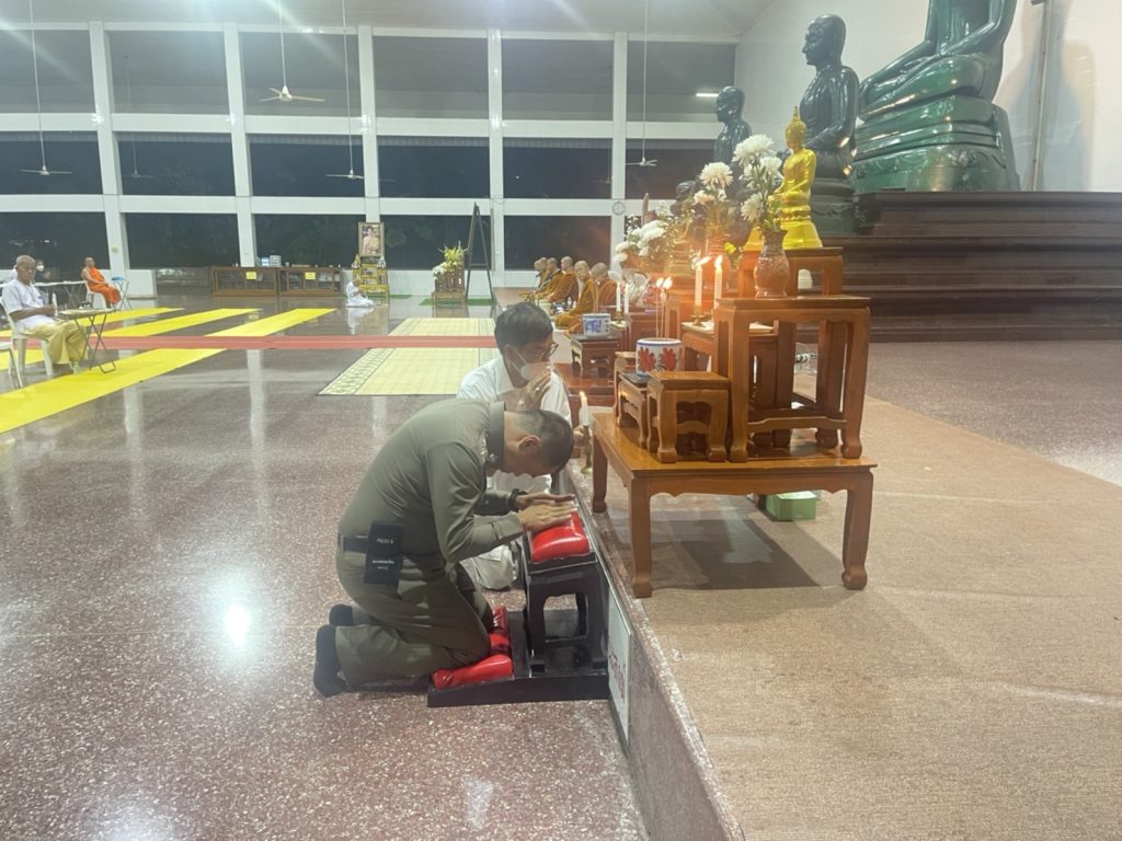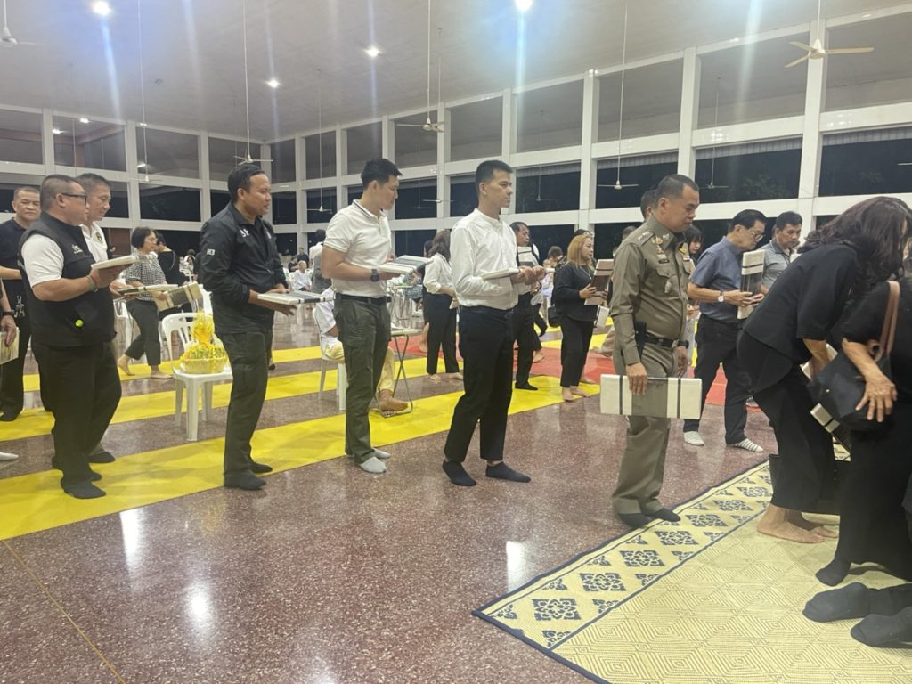 พ.ต.อ.ปรัชญา ทิศลา ผกก.สภ.เมืองเชียงใหม่,พ.ต.ท.ธนพัต ครสิงห์ รอง ผกก.สอบสวนฯ,พ.ต.ท.นฤพนธ์ พุทธวงค์ รอง ผกก.สอบสวนฯ,พ.ต.ท.จารุวัฒน์ ใจสุบรรณ์ สว.สอบสอบฯ,พ.ต.ท.เกริกชัย กิตติ สว.สอบสวนฯ,พ.ต.ต.วิษณุ นวนมุสิด สวป.ฯ และข้าราชการตำรวจ สภ.เมืองเชียงใหม่ ร่วมฟังสวดอภิธรรม แด่ ร.ต.ต.เสรี บุญศรีรัมย์ หน.พลขับรถพนักงานสอบสวน ที่สูญเสียบิดา คุณพ่อน้อย บุญศรีรัมย์ ณ.ศาลาบำเพ็ญกุศล วัดสันป่าสักวรอุไร ต.หนองควาย อ.หางดง จ.เชียงใหม่