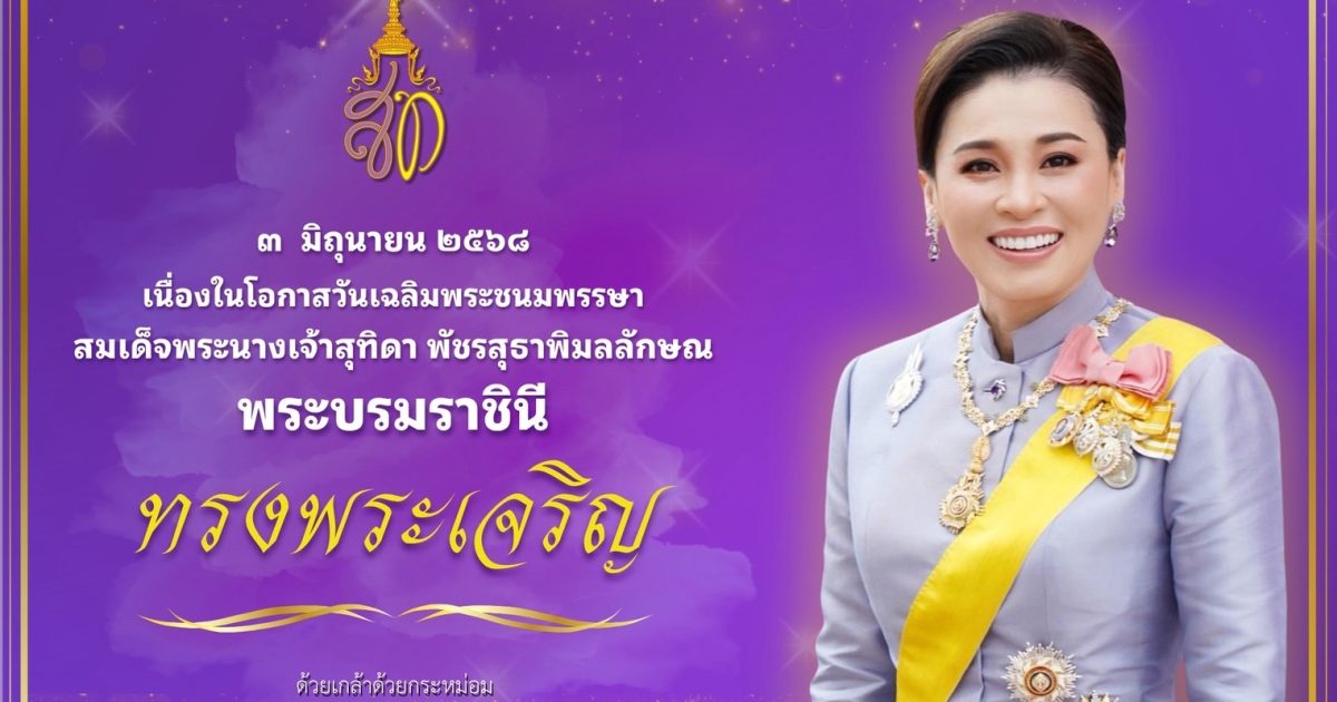 สำนักพระราชวัง ขอเชิญชวนประชาชนร่วมลงนามถวายพระพรชัยมงคล สมเด็จพระนางเจ้า ฯ พระบรมราชินี เนื่องในโอกาสวันเฉลิมพระชนมพรรษา วันที่ ๓ มิถุนายน ๒๕๖๘ ผ่านระบบออนไลน์ ที่เว็บไซต์หน่วยราชการในพระองค์ www.royaloffice.th ระหว่างวันที่ ๒ – ๔ มิถุนายน ๒๕๖๘