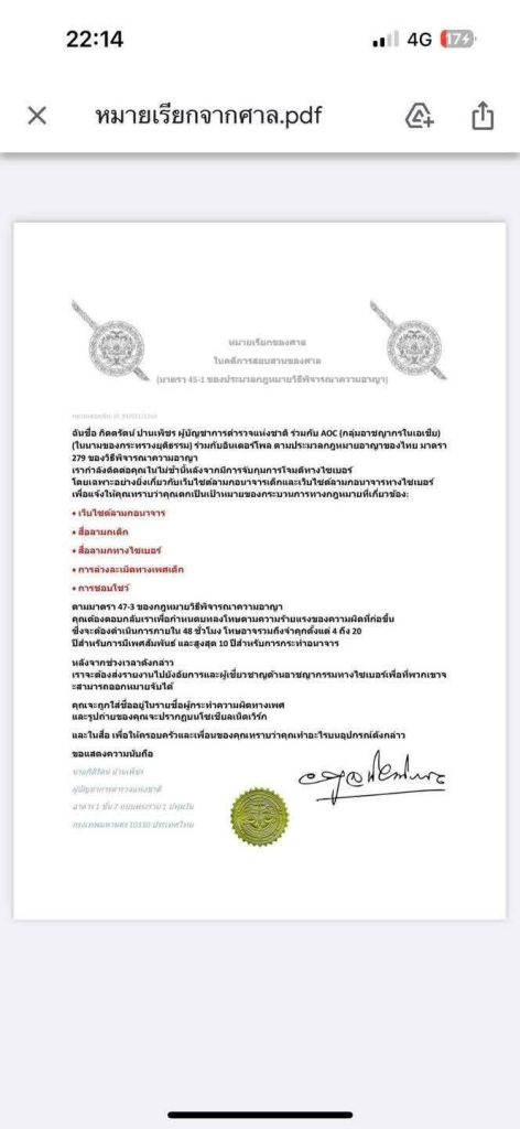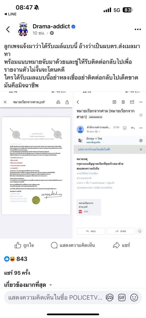 พร้อมแนบหมายจับมาด้วย และขู่ให้รีบติดต่อกลับไปเพื่อรายงานตัวไม่งั้นจะโดนคดี ใครได้รับเมลแบบนี้อย่าหลงเชื่ออย่าติดต่อกลับไปเด็ดขาดมันคือมิจฉาชีพ