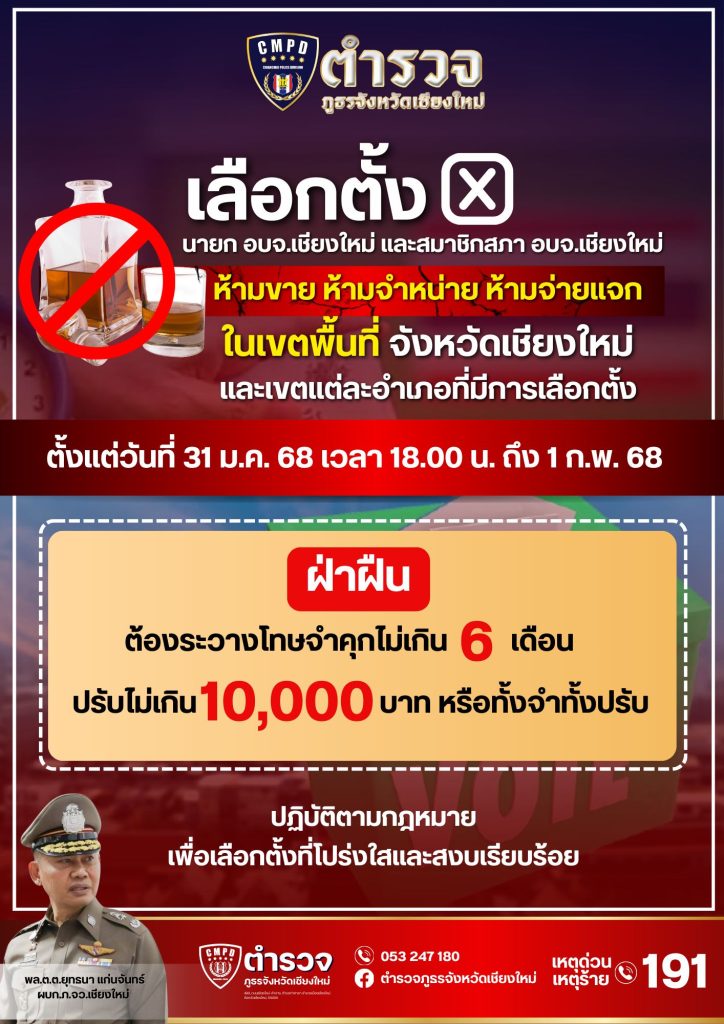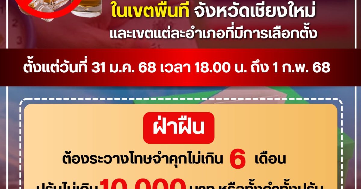 ห้ามจำหน่ายสุรา ในเขตพื้นที่จังหวัดเชียงใหม่