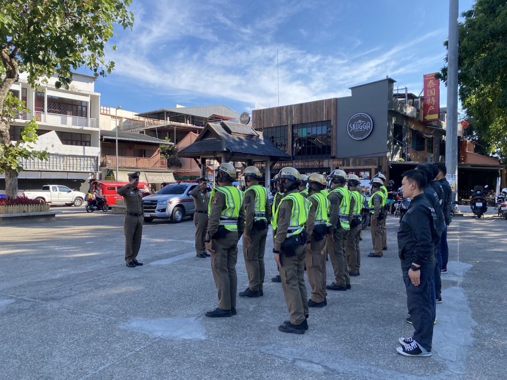 พ.ต.อ.ปรัชญา ทิศลา ผกก.สภ.เมืองเชียงใหม่, พ.ต.ท.คทาวุฒิ หงษ์หนึ่ง รอง ผกก. ป.ฯ , พ.ต.ต.วิษณุ นวนมุสิด สวป.สภ.เมืองฯ ประชุมปล่อยแถว ณ ข่วงประตูท่าแพ ในการป้องกันไม่ให้มีเหตุรุนแรงเกิดขึ้นกับสถานที่ทำการ สถานที่ราชการ สถานที่สำคัญต่างๆ ชี้แจงภารกิจ เน้นย้ำรักษาความสงบเรียบร้อย ให้เกิดความปลอดภัยสูงสุด