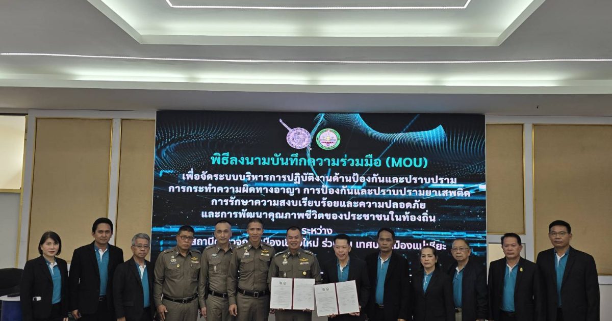 พ.ต.ต.กันย์กวีร์ กนกทิพยกุล สวป.(ชส.) สภ.เมืองเชียงใหม่พร้อมชุด ชมส. ร่วมกับเทศบาลนครเชียงใหม่ และเทศบาลเมืองแม่เหียะ จัดทำบันทึกความร่วมมือ (MOU) เพื่อจัดระบบบริหาร การปฏิบัติงานด้านการป้องกันและปราบปรามการกระทำความผิดทางอาญา การป้องกันปราบปรามยาเสพติด การรักษาความสงบเรียบร้อนและความปลอดภัย และการพัฒนาคุณภาพชีวิตของประชาชนในท้องถิ่น