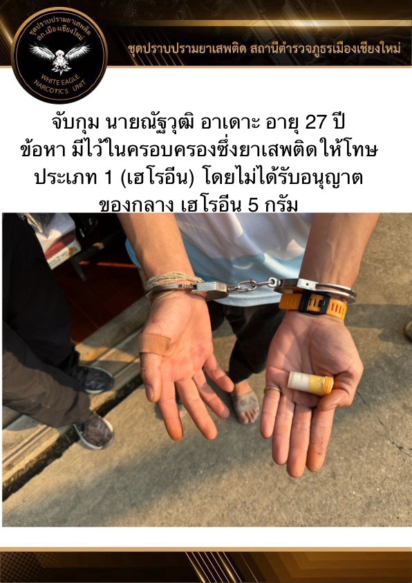 18 มีนาคม 2568 โดยการอำนวยการของ พ.ต.อ.ปรัชญา ทิศลา ผกก.สภ.เมืองเชียงใหม่, พ.ต.ท.ทัตตวีย์ ด่านพิทักษ