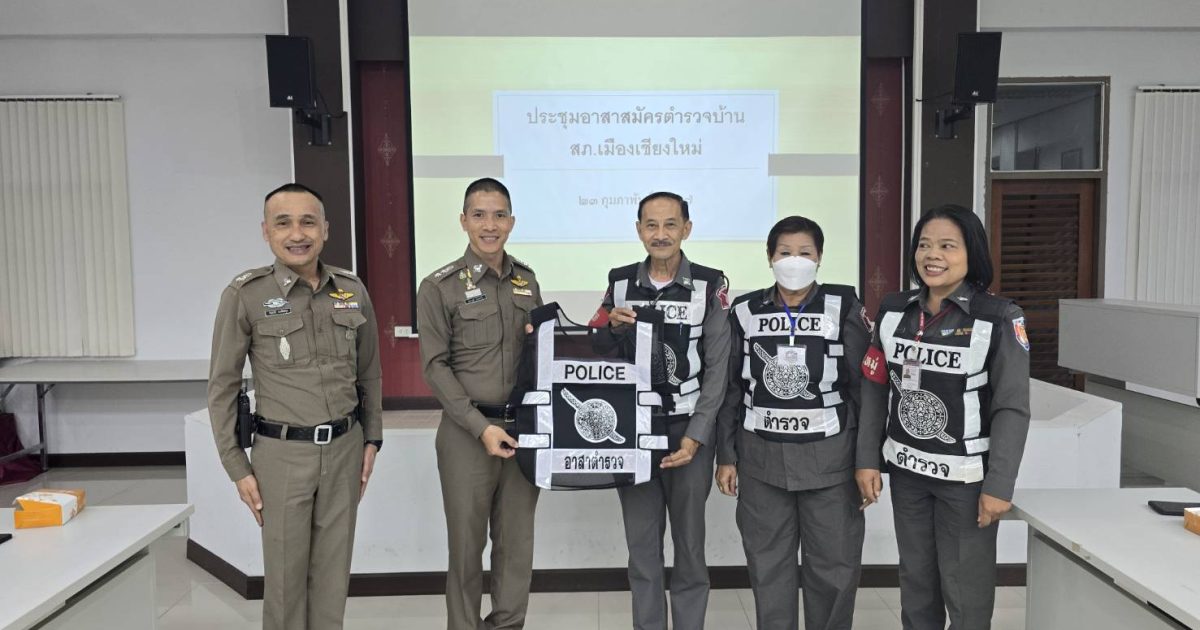 จัดประชุมอาสาสมัครตำรวจบ้าน สภ.เมืองเชียงใหม่ โดยแนะนำตัว พ.ต.ต.กันย์กวีร์ กนกทิพยกุล สวป.(ชส.)ฯ ทำความรู้จักกับอาสาสมัครฯ และได้มอบนโยบาย สอบถามปัญหา ข้อเสนอแนะจากอาสาสมัครฯ เพื่อให้การปฏิบัติหน้าที่เป็นไปได้ด้วยดี ตามนโยบายของสำนักงานตำรวจแห่งชาติ