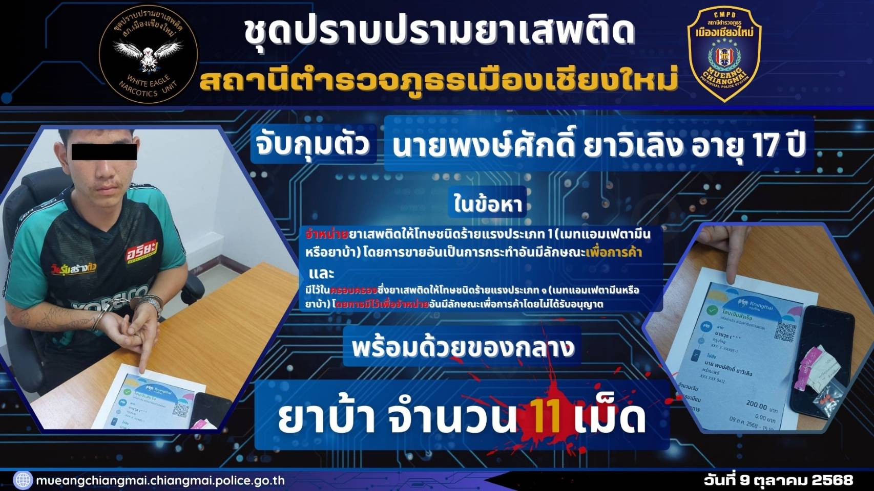 10 ต.ค.2568 โดยการอำนวยการของพ.ต.อ.ปรัชญา ทิศลา ผกก.สภ.เมืองเชียงใหม่พ.ต.ท.ทัตตวีย์ ด่านพิทักษ์ตระกู