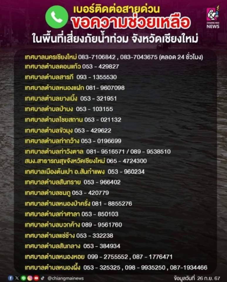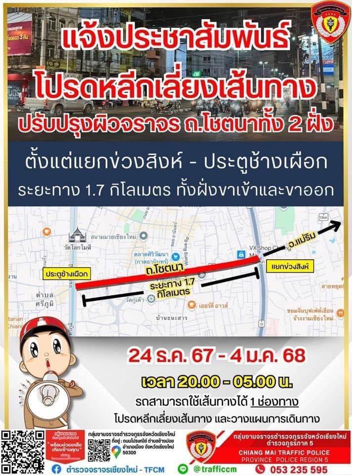 1 แชร์ = ช่วย 1 คัน! ตำรวจเชียงใหม่ขอความร่วมมือประชาชนย้ายยานพาหนะบนสะพานและริมถนน ในพื้นที่ปัจจุบั