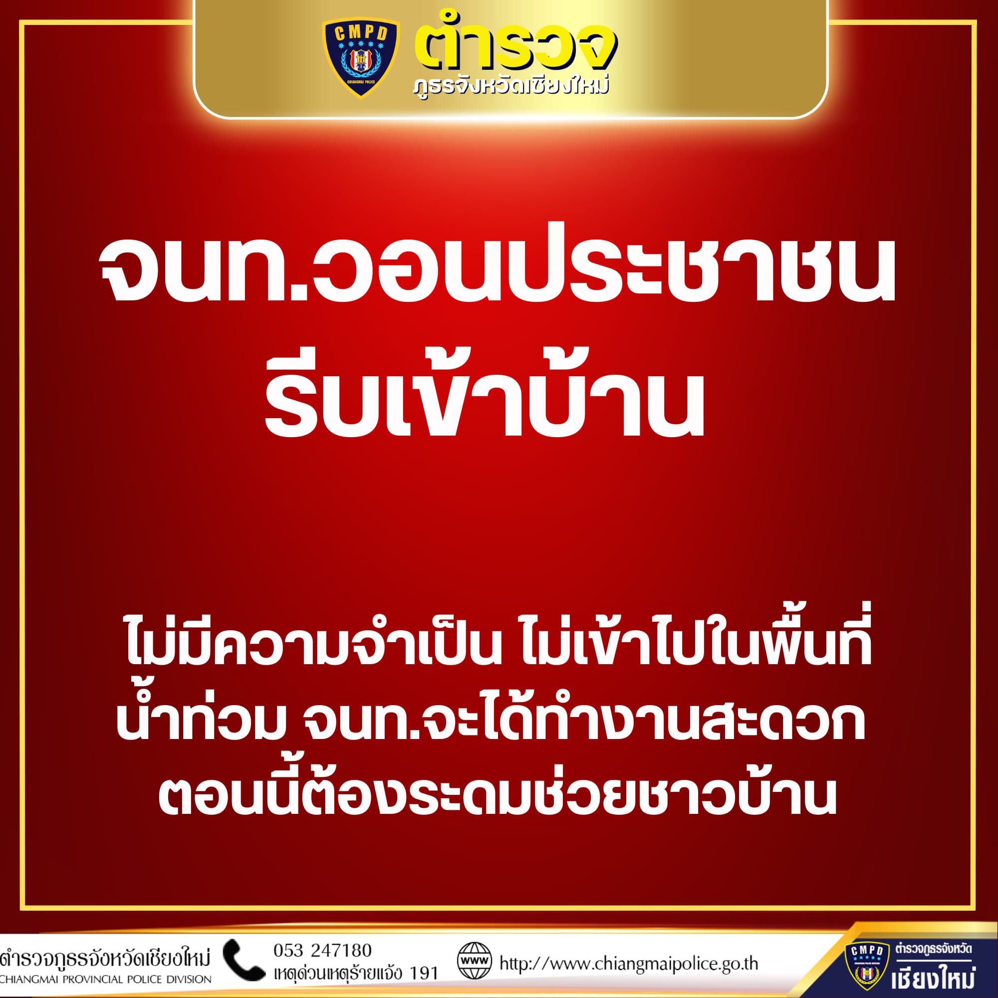 จนท.วอนประชาชน รีบเข้าบ้าน ไม่มีความจำเป็น ไม่เข้าไปในพื้นที่ น้ำท่วม ตอนนี้จังหวัดเชียงใหม่ เปิดศูน