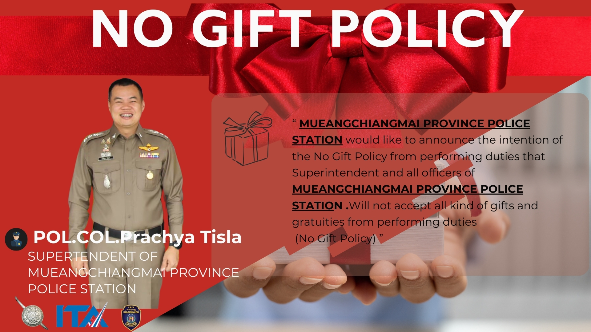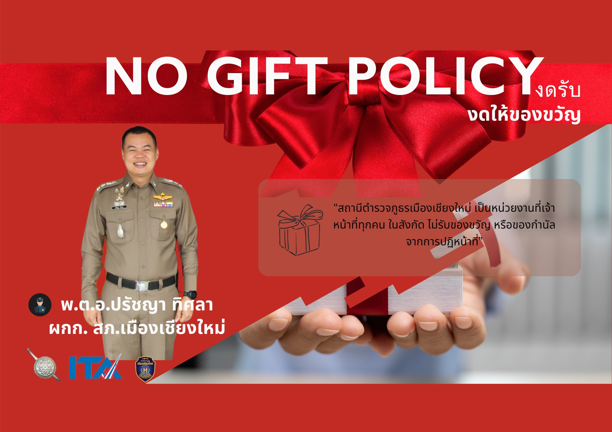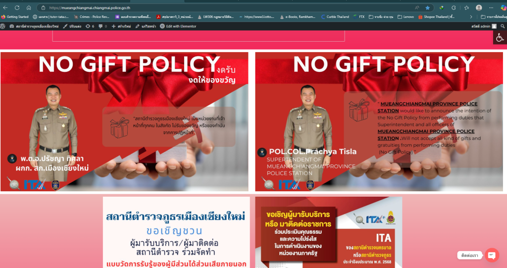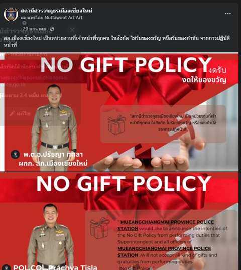 มีการแสดงภาพการเผยแพร่ อินโฟกราฟิกไม่รับของขวัญและของกำนัลณ จุดบริการ และจุดประชาสัมพันธ์ และหน้าแรกของเว็ปใซต์หน่วยงาน