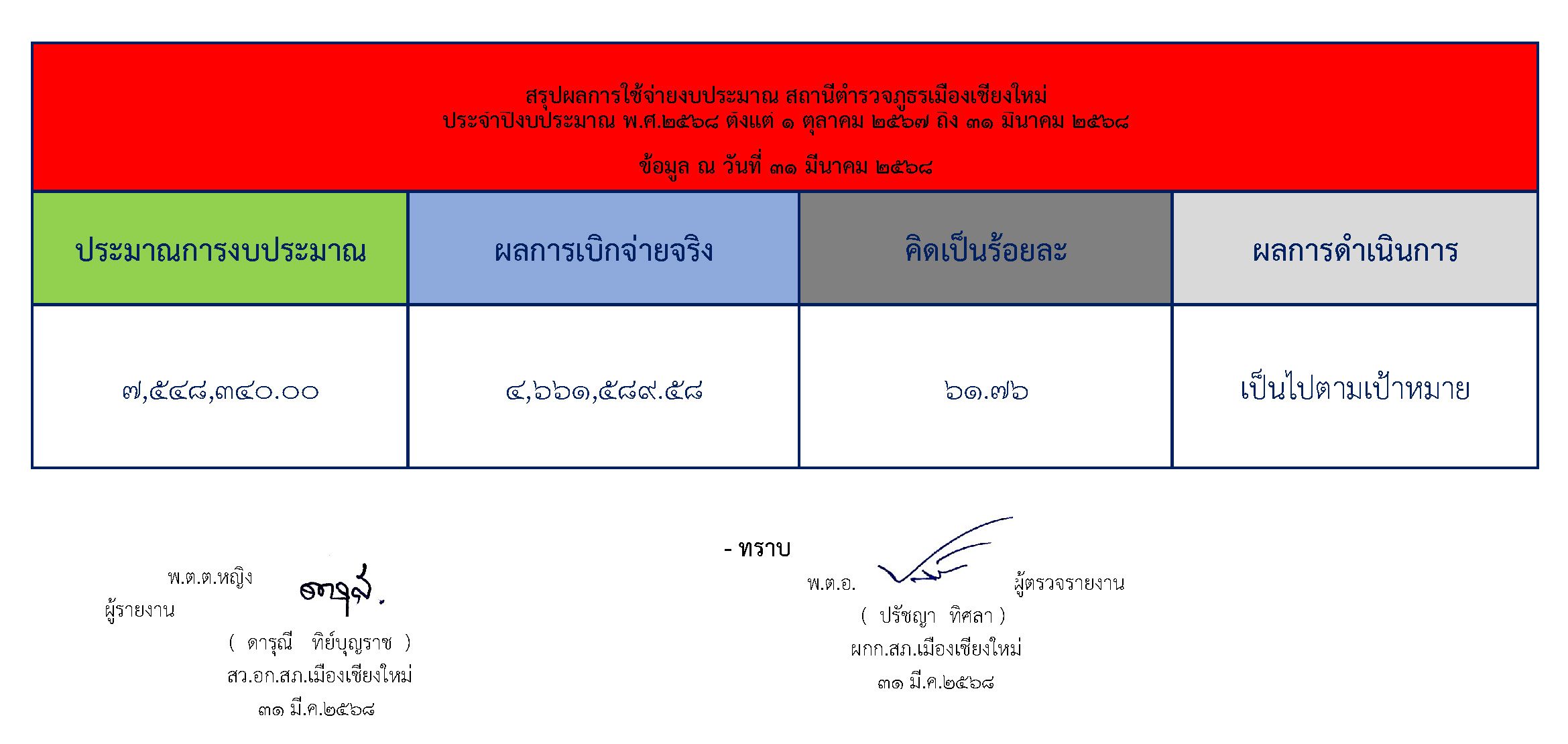 สรุปผลการใช้จ่ายงบประมาณ ประจำปี พ.ศ.2568