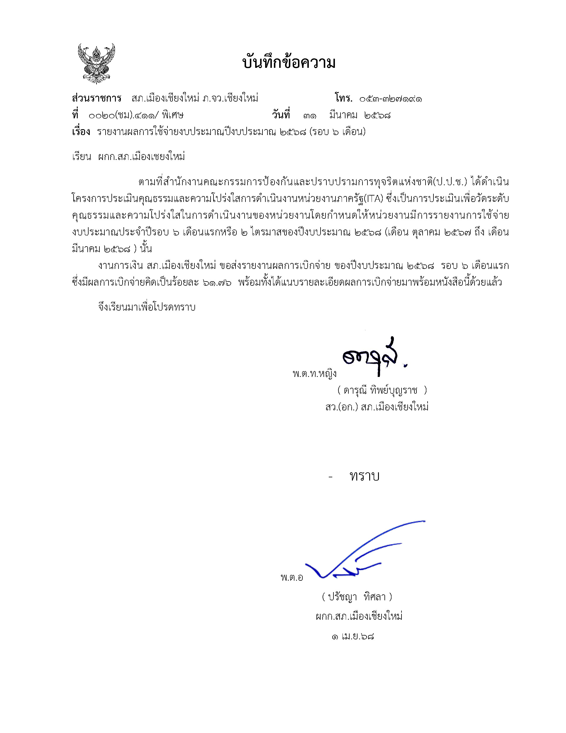 รายงานผลการใช้จ่ายงบประมาณประจำปี 2568