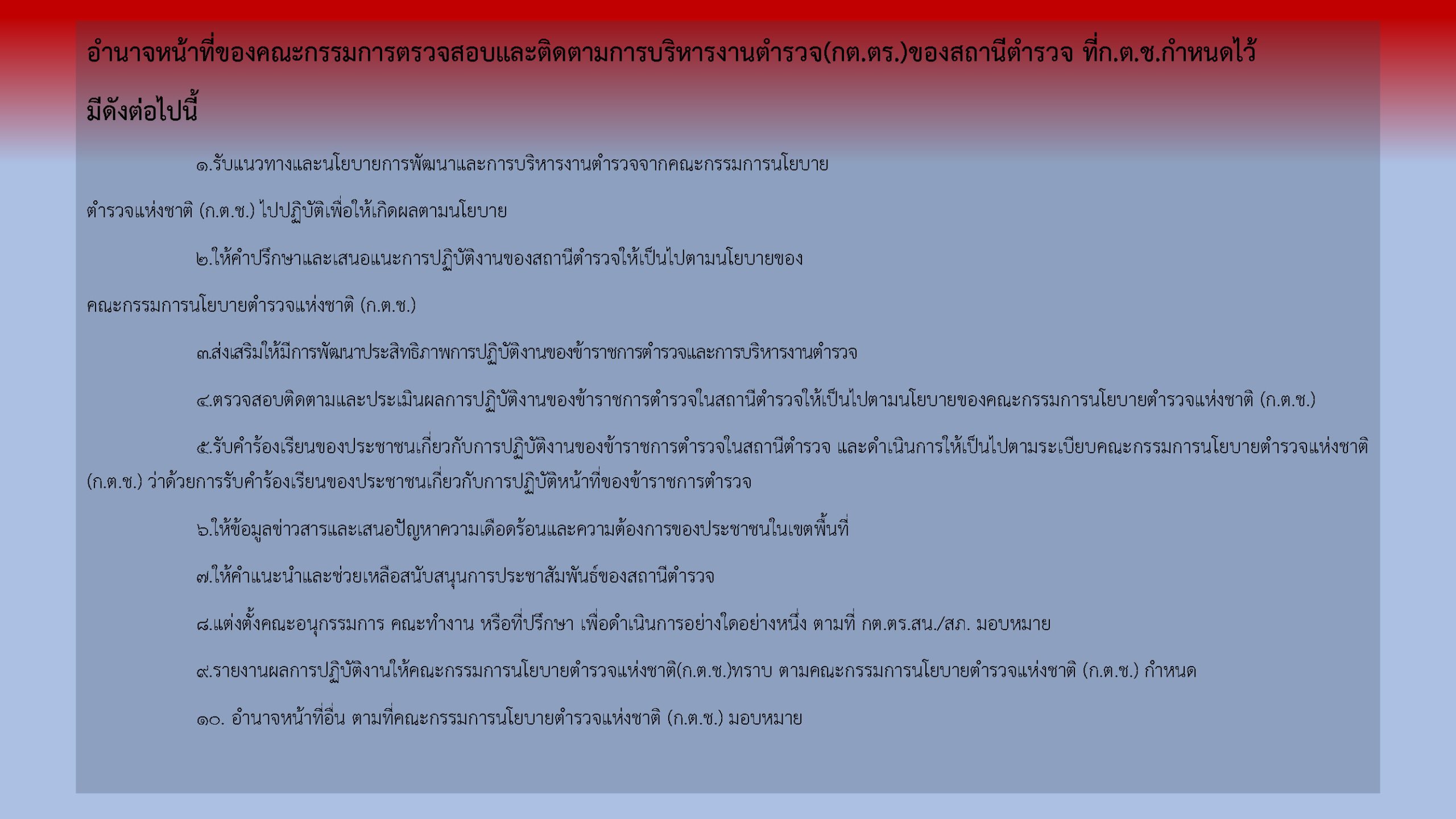 บทบาทอำนาจหน้าที่คณะกรรมการตรวจสอบและติดตามการบริหารงานตำรวจ(กต.ตร.)ของสภ.เมืองเชียงใหม่